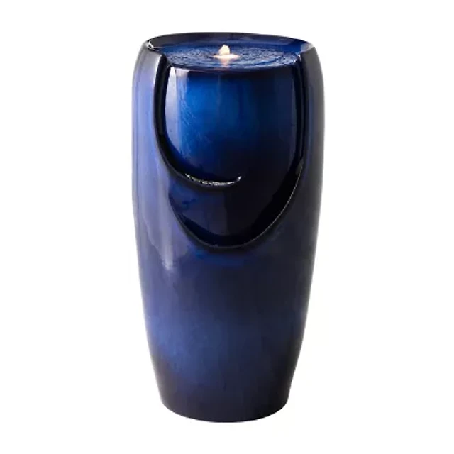 Glitzhome 29.25" Cobalt Blue Ceramic Pot Outdoor Fountains