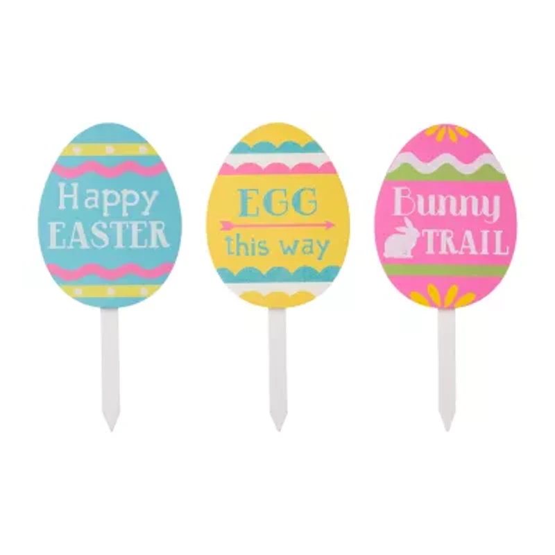 Glitzhome 3pk 15" Wooden Egg Yard Stake Easter Yard Art