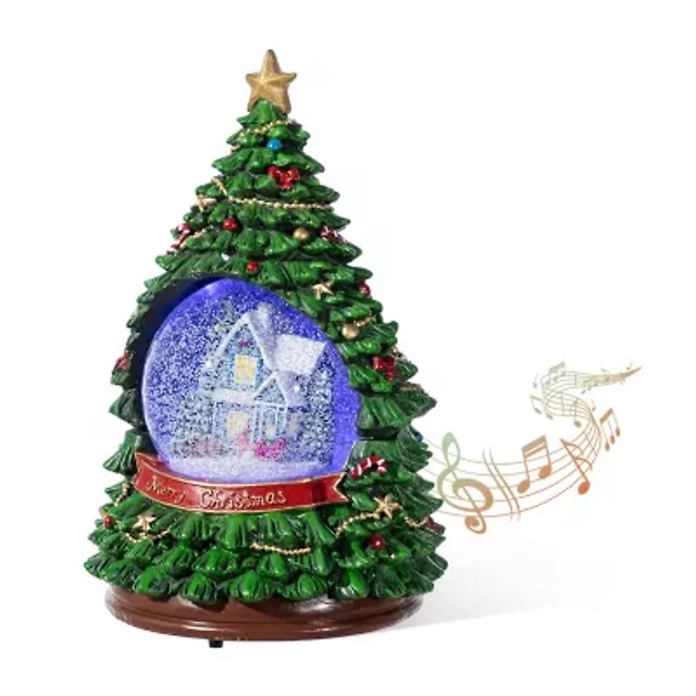 Glitzhome Christmas Resin Lighted Musical Snowflakes Christmas Tree Waterglobe Christmas Tabletop Decor