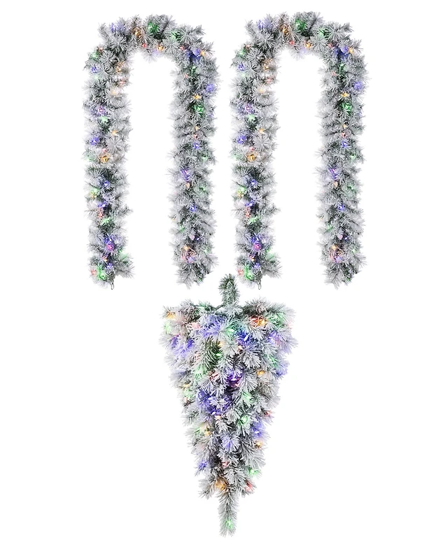 Glitzhome Pre-Lit Snow Flocked Greenery Pine Christmas Teardrop and Matched Garlands, Set of 3