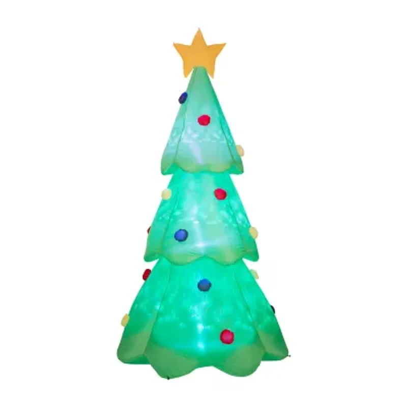 Deck the yard with this showstopping Inflatable Christmas tree featuring shiny metallic ornaments. Accented with a gold star, our inflatable tree makes a striking addition to your outdoor Christmas decorations. Setup is super simple. Just plug it in, stake it down and watch the magic unfold. Includes everything needed for easy outdoor setup.