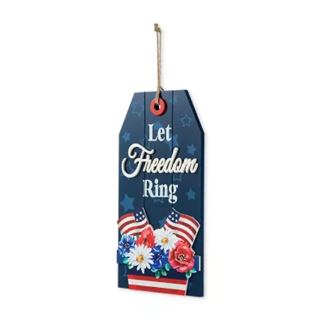 Glitzhome 20.75" H Patriotic, Americana Word Sign Door Hanger