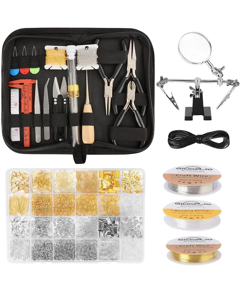 Gnuadz 1810 Pcs Jewelry Making Kit Pliers Wires Findings Chains Magnifier Storage Bag