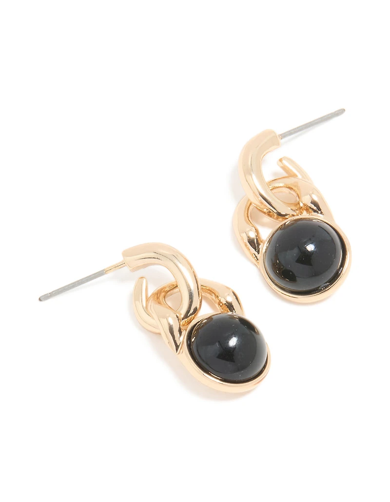 Gold Black Stone Mini Doorknocker Round Stud Earrings