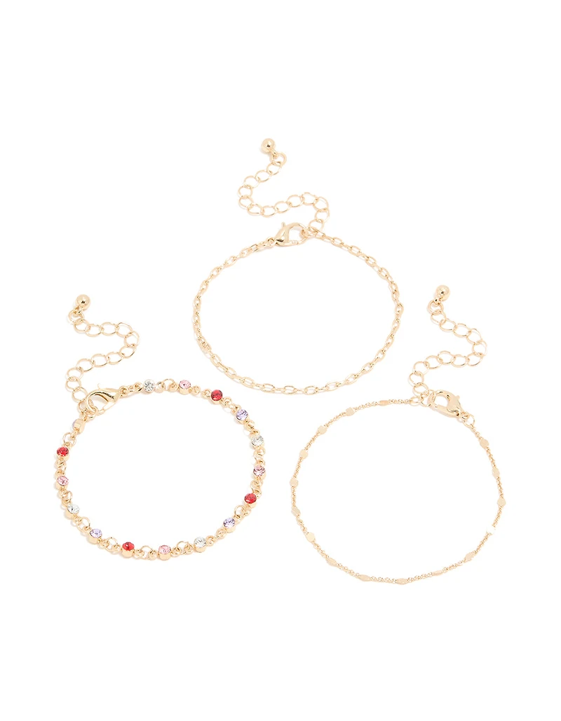 Gold Diamante Circle & Chain Bracelets 3-Pack