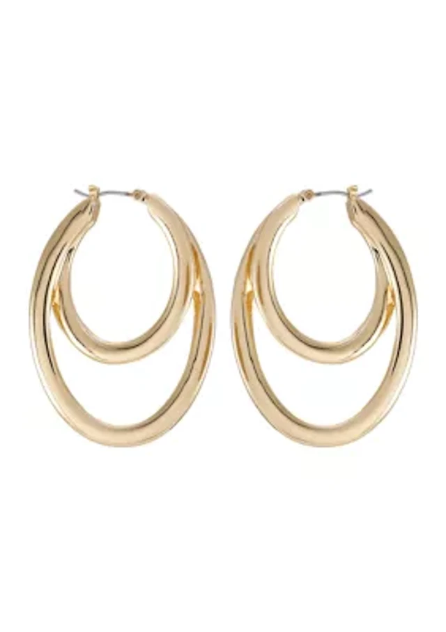 Gold Double Oval Hoop Earrings