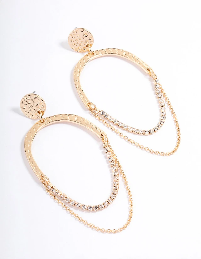 Gold Plated Cubic Zirconia Double Chain Drop Earrings