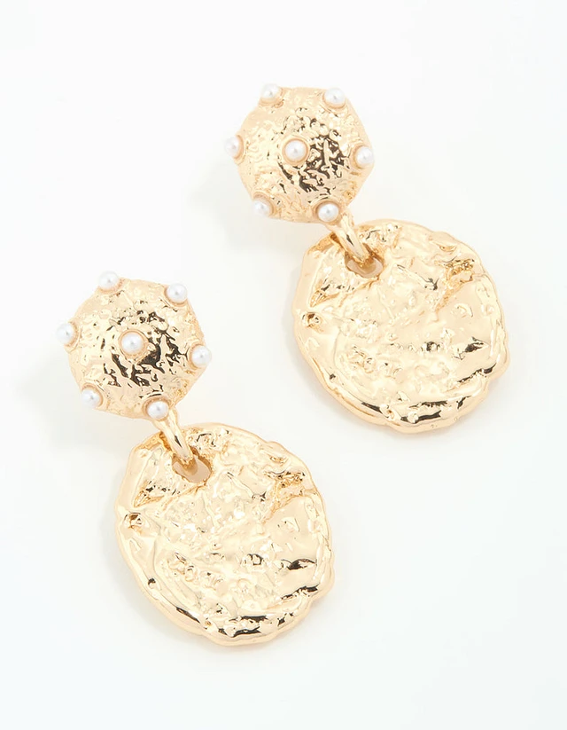 Gold Molten Pearl Drop Earrings