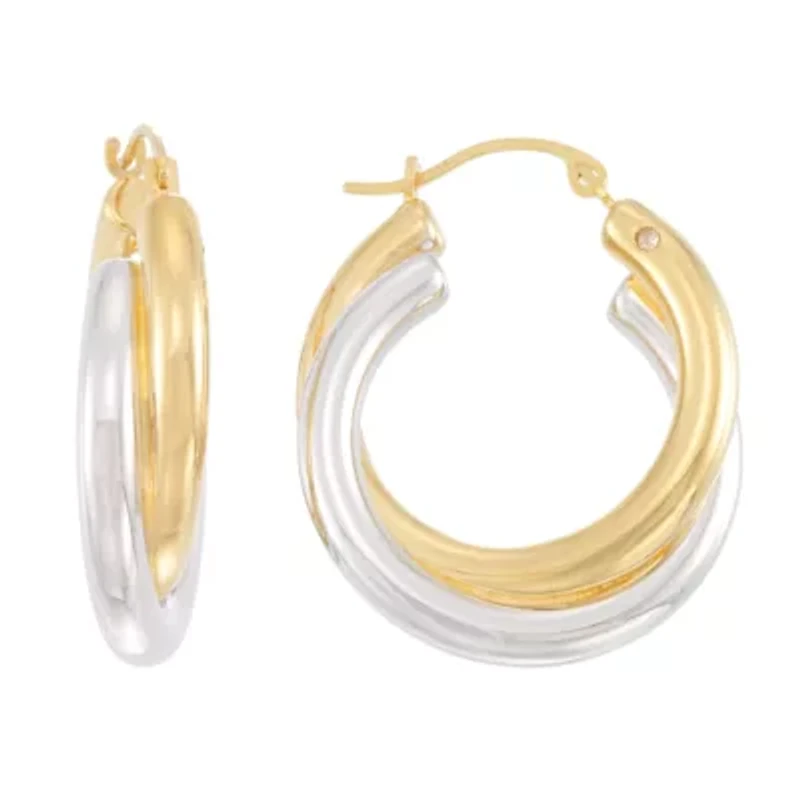 Gold Opulence Two Tone 14K Gold Over Diamond Resin Hoop Earrings
