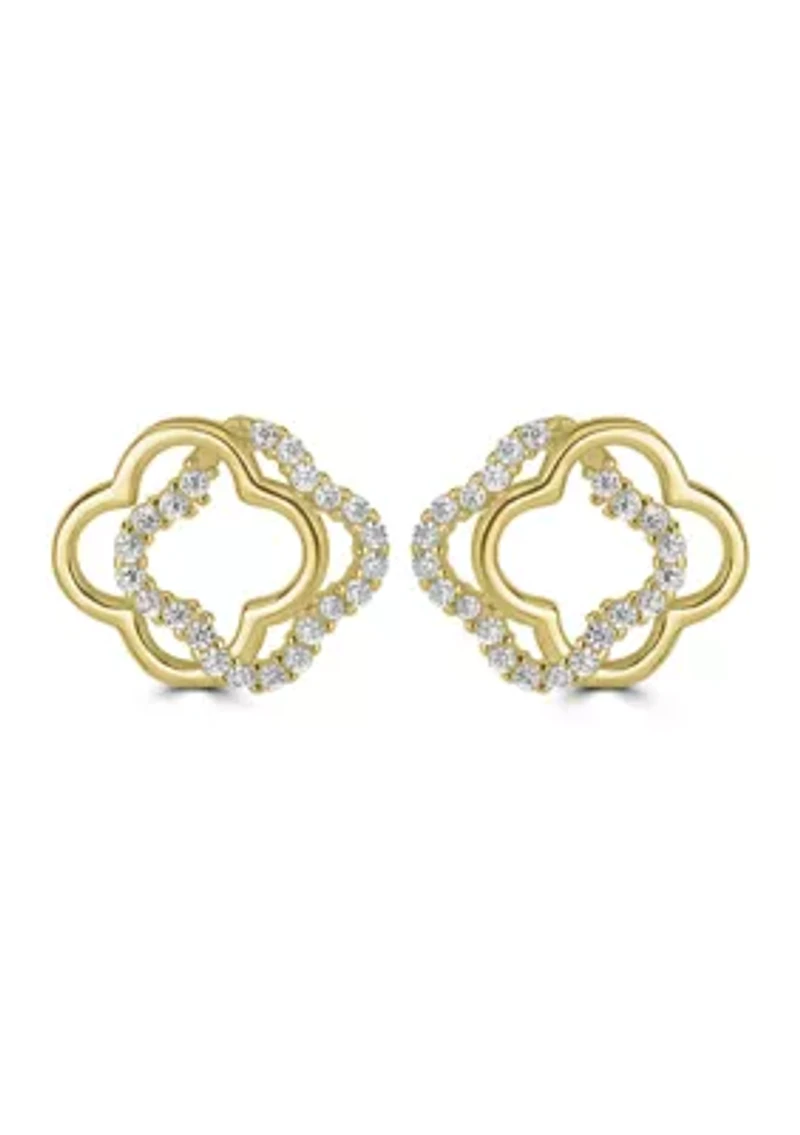 Gold over Sterling Silver Pavé Cubic Zirconia Open Clover Stud Earrings