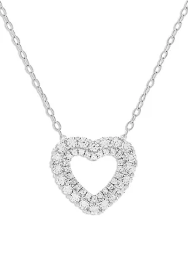 Featuring a polished gold over sterling silver finish, this piece from Belk & Co. showcases a delicate heart design embellished with 44 sparkling cubic zirconia stones. The spring ring clasp ensures a secure and comfortable fit, while the 18-inch length makes it perfect for layering or wearing alone. Spring ring clasp Polished finish Imported Belk Exclusive Product Specifications 18" L Material & Care Gold over silver Clean with a soft cloth