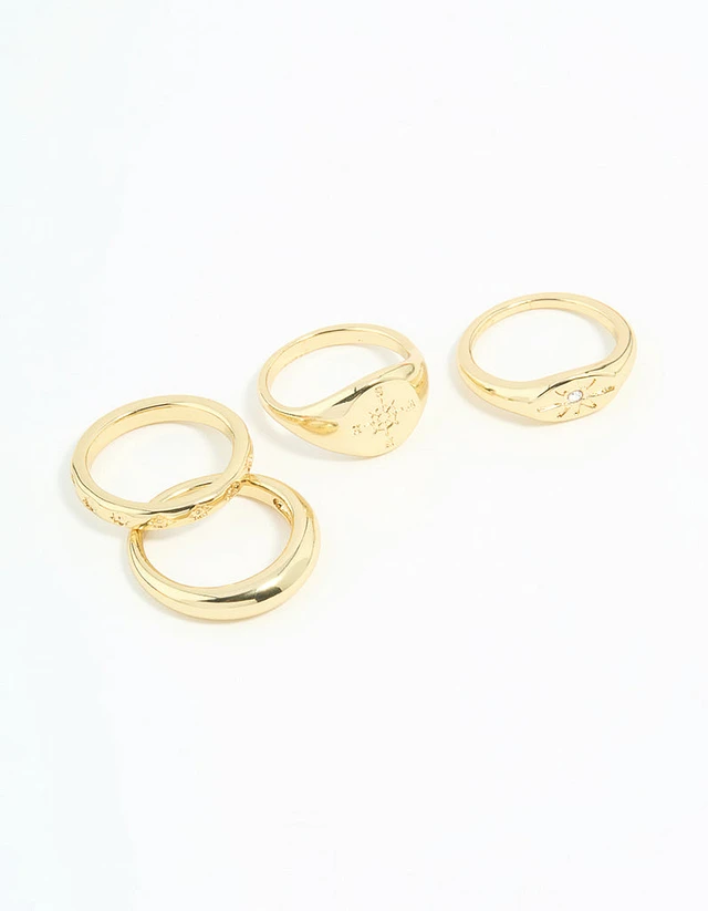 Gold Plated Compass & Star Stacking Rings 4-Pack