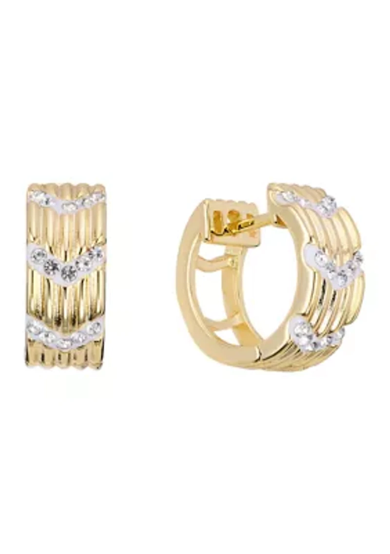 Add a sleek sparkle to your style with these 15mm gold-plated hoop earrings from Belk Silverworks. Featuring a chic chevron pattern set with light-catching crystals, their hinge design ensures effortless wear and a polished finish for any occasion. Hinge post Polished finish Imported Belk Exclusive Material & Care Gold-plated metal Clean with a soft cloth