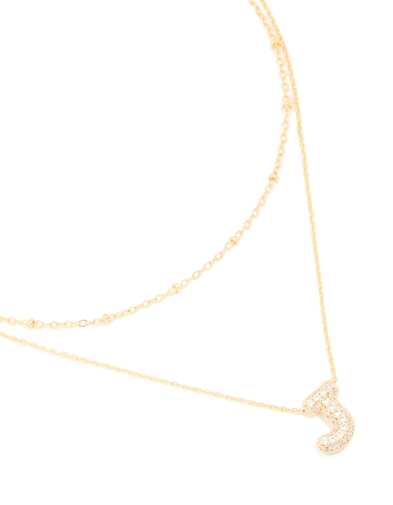 Gold Plated Cubic Zirconia Pave Bubble Letter J Layered Necklace