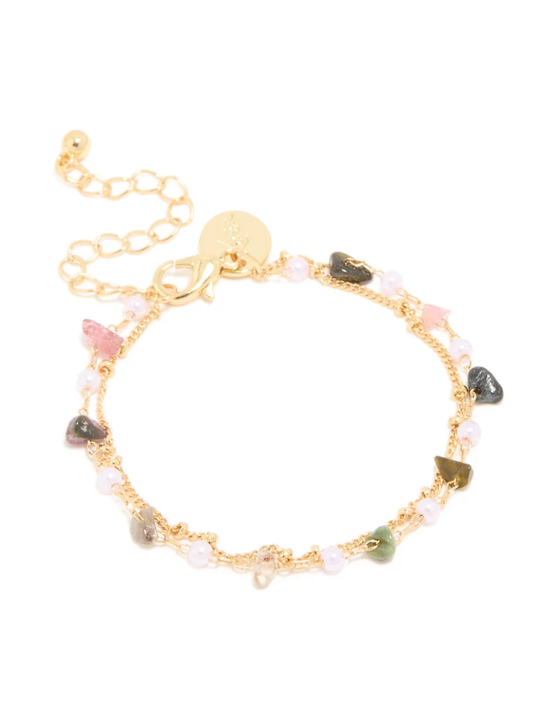 Gold Plated Multicoloured Semi Precious Stone Layered Bracelet