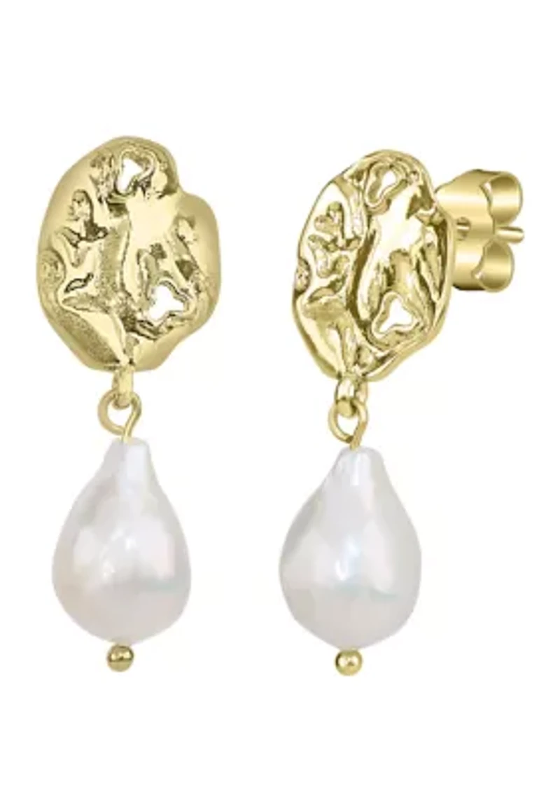 Punctuated with pearls, these leaf-drop earrings from Belk Silverworks add an elegant touch to any ensemble. Post back earring Polished finish Imported Belk Exclusive Product Specifications 36 mm x 14 mm x 10 mm Material & Care Gold-plated metal Clean with a soft cloth