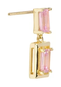 Gold Plated Pink Cubic Zirconia Baguette Double Drop Earrings in Franklin, TN