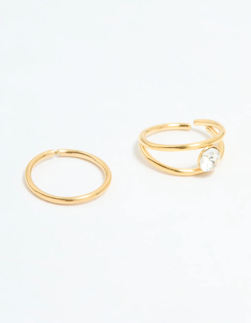 Gold Plated Surgical Steel Cubic Zirconia Layered & Smooth Nose Rings 2-Pack
