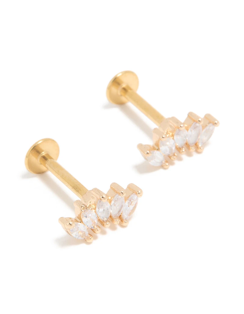 Gold Plated Surgical Steel Cubic Zirconia Marquise Fan Flat Back Studs