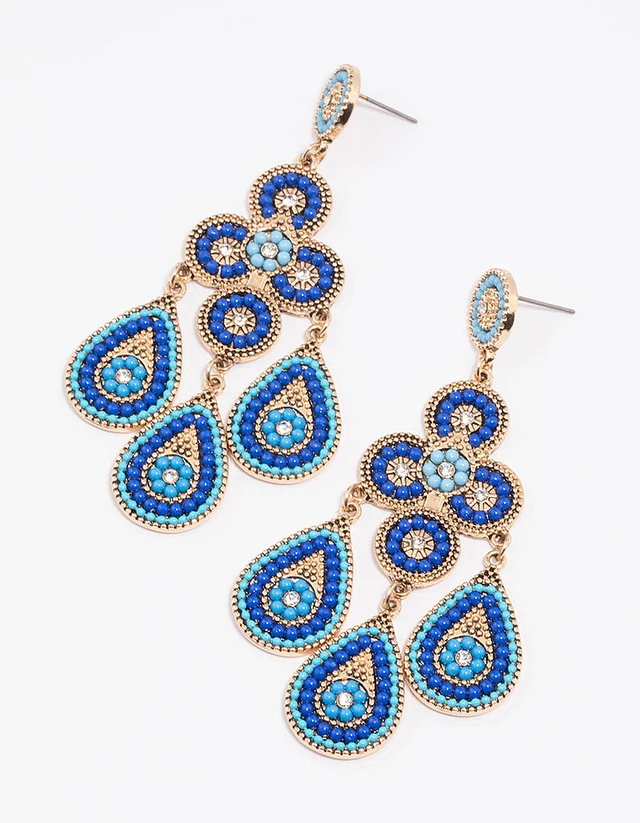 2028 Acrylic Seed Bead Gold-Tone Clip Earrings