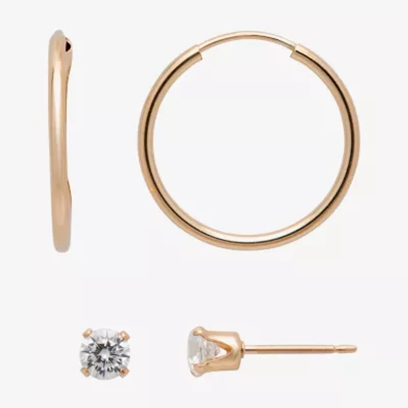 Gold Theory Womens Cubic Zirconia Round Pair Earring Set