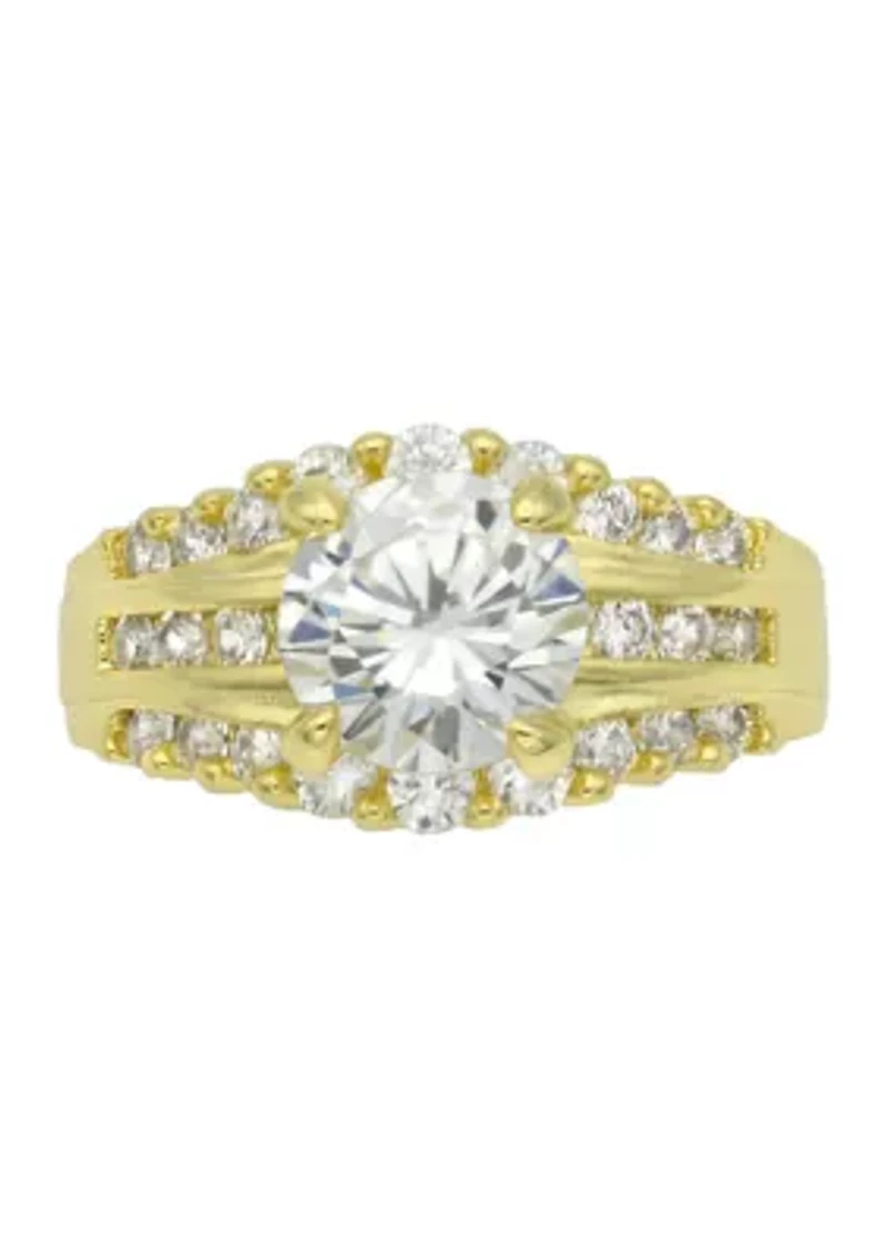 Gold Tone Cubic Zirconia Round Stone Wedding Set Ring
