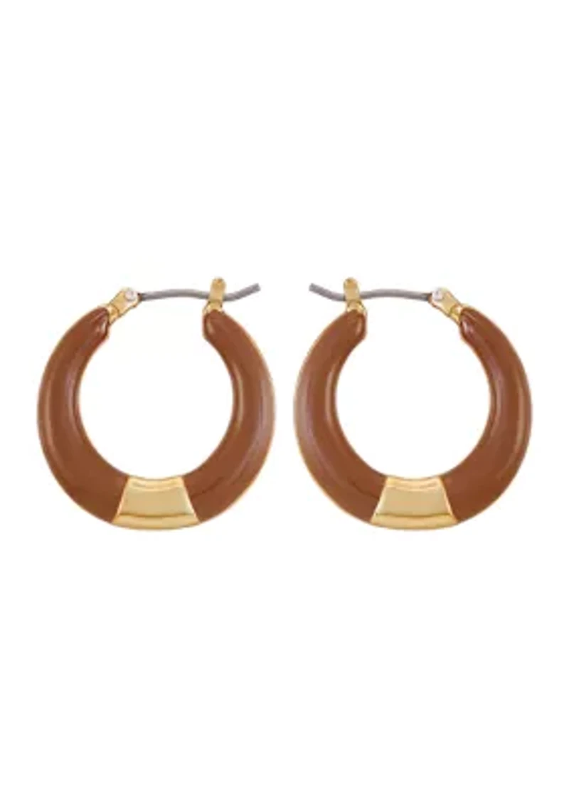 Elevate your style with these stunning earrings from Vince Camuto, designed to add a pop of color to any look. Crafted from luxurious gold-tone metal, these hoops offer a fun pop of pink, making this classic hoop modern and perfect for any girls' night. Click top closure Imported Material Gold-tone metal