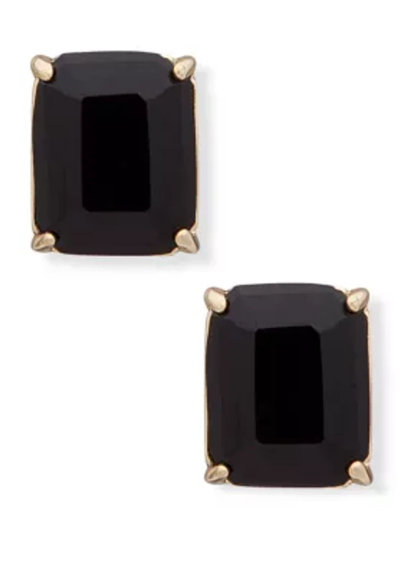 Crafted with a rectangular jet stones, these stud earrings by Lauren have an elegant look and can be paired with any outfit. Post back earring Polished finish Imported Product Specifications 0.43 in Length Material & Care Brass post Gold-tone metal Clean with a soft cloth
