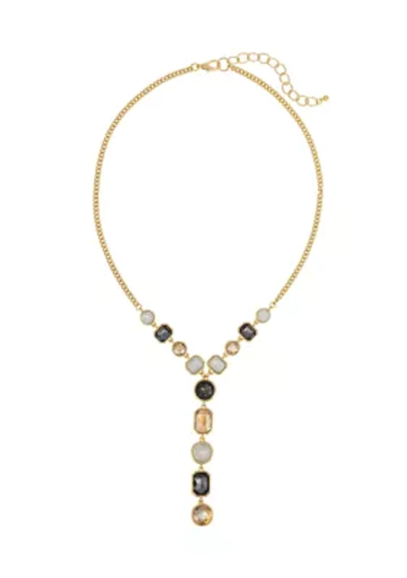 Gorgeous stone stations cascade down the Y-shaped silhouette of this beautiful gold-tone necklace from evie & emma. Lobster closure Polished finish Imported Belk Exclusive Product Specifications 20" L + 3" extender with 3.8" drop Material & Care Gold-tone metal Clean with a damp cloth or soft brush