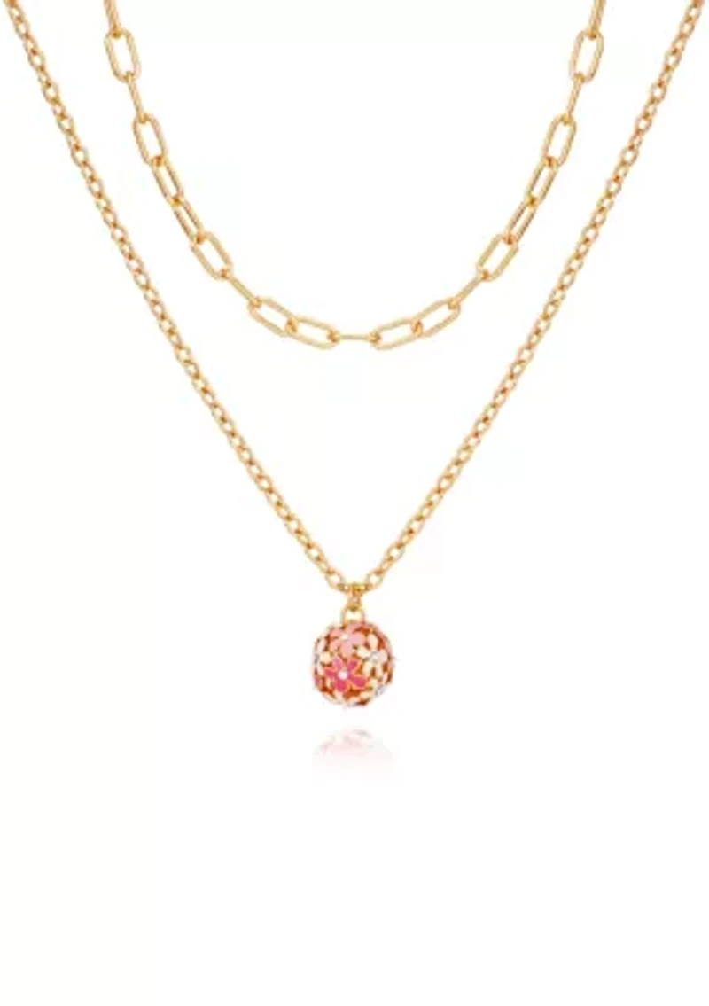 Gold Tone Multi Strand Pink Floral Pendant NecklaceGold Tone Multi Strand Pink Floral Pendant NecklaceGold Tone Multi Strand Pink Floral Pendant NecklaceGold Tone Multi Strand Pink Floral Pendant Necklace