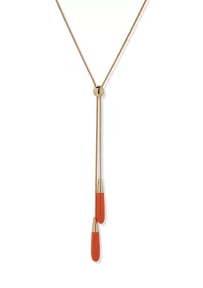 This Nine West necklace adds subtle sophistication to any outfit with its lariat design, making it perfect for all occasions. Polished finish Imported Product Specifications 24" L Material & Care Gold-tone metal Clean with a soft cloth