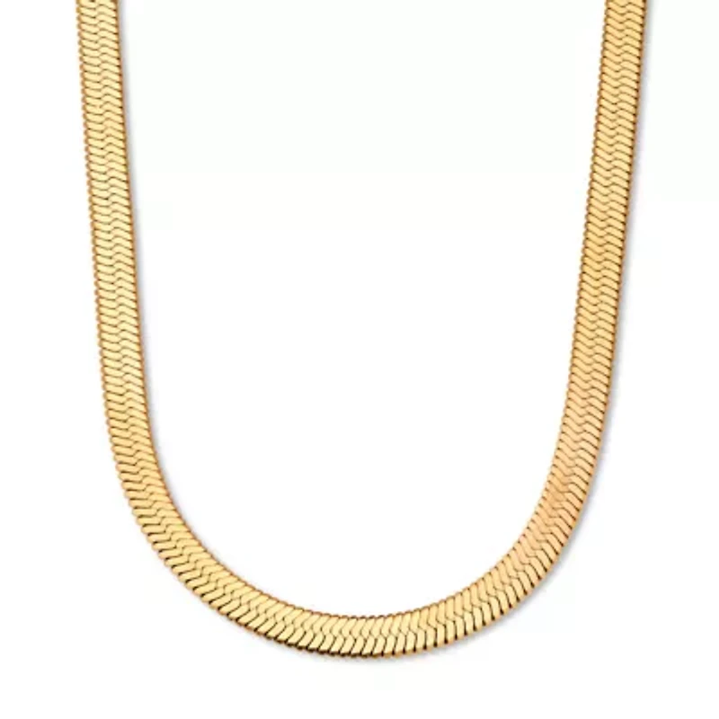 Instantly elevate any outfit with this timeless and sophisticated herringbone necklace. Add a pendant to enhance its charm, or pair with other necklaces for a layered look. Goldtone with lobster clasp. 18 inch length plus 2.5 inch extension.GoldtoneMeasures: 5 mm wide x 18 inches long x 0.7 mm high, plus 2 1/2 inch extensionIncludes gift box and drawstring pouchGoldtoneDimensions: 5 mm wide x 18 inches long x 0.7 mm high, plus 2 1/2 inch extensionIncludes gift box and drawstring pouch Lobster closure Polished finish Warranty available China Imported Product Specifications 0.22 in x 18 in x 0.2 in, 18" length Material & Care Metal, Gold-Tone Clean with a soft cloth.
