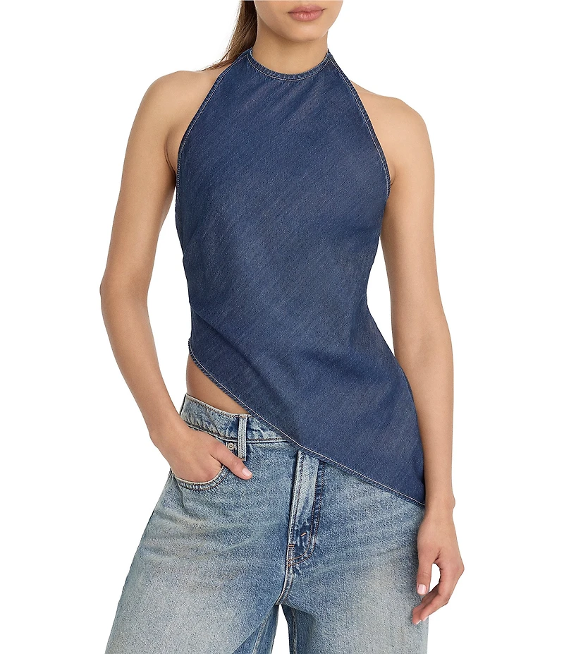 Good American Asymmetric Hem Halter Neck Sleeveless Top