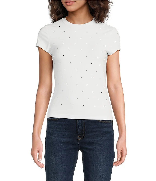 Good American Crystal Baby Tee Crew Neck Short Sleeve Tee