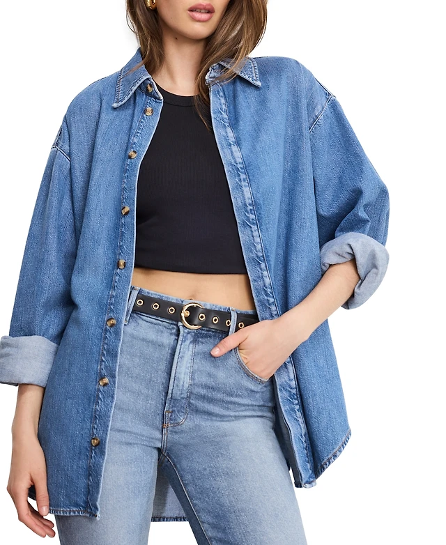 Bar Iii Women's Oversized Denim Shirt, Macy's Exclusive