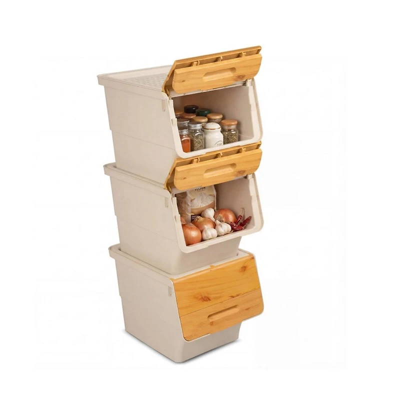 Gouun 3 Pieces Storage Bins on Wheels Stackable Plastic Boxes with Stay-Open Lid Small