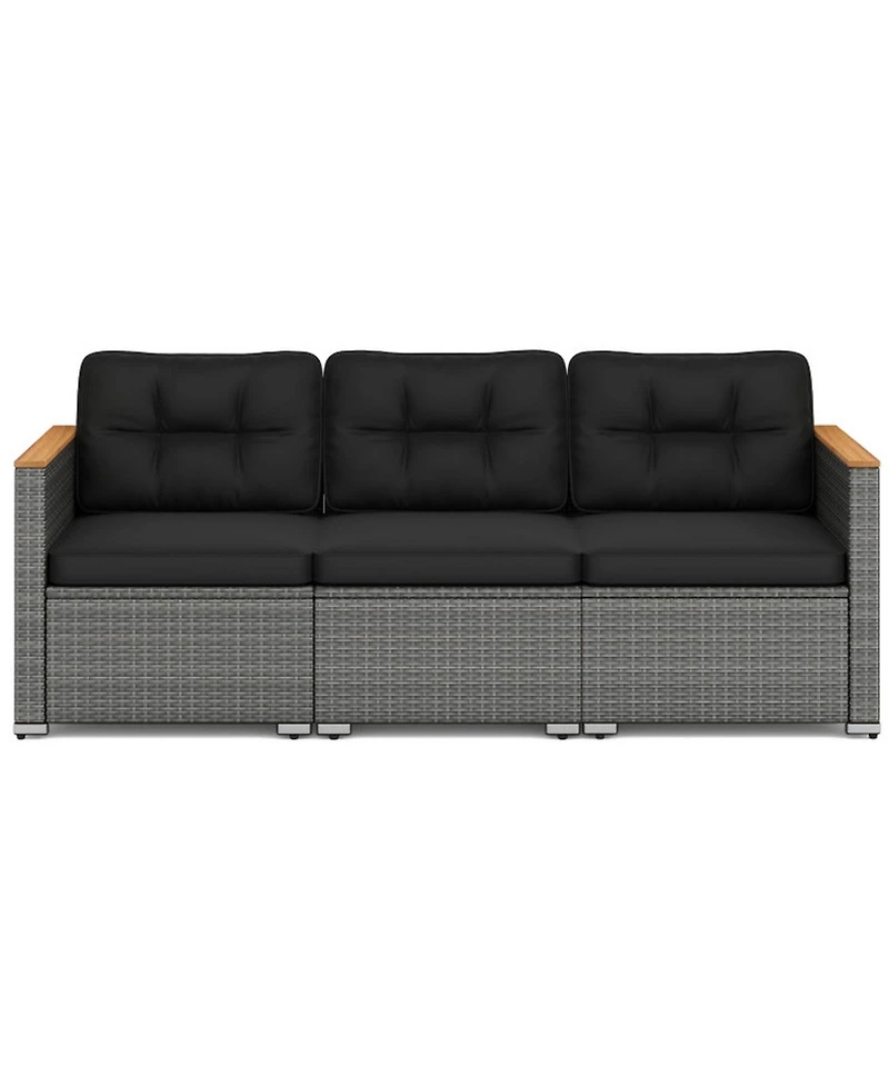 Gouun 3-Seat Outdoor Patio Pe Wicker Sofa with Acacia Wood Armrests, Deep Cushions in Franklin, TN