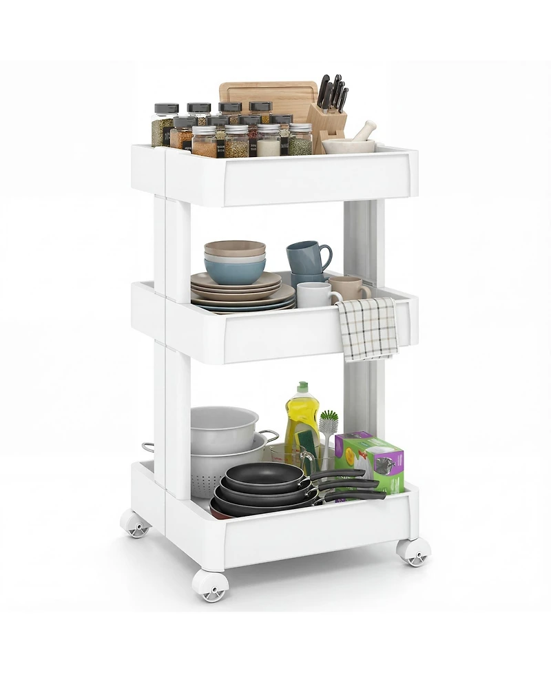 Streamline kitchen, bathroom, or craft room storage with this lightweight three-tier rolling cart that weighs just 4 lbs yet supports a combined 80 lbs across its ventilated Pp trays. Each tray detaches for easy sink-side cleaning and doubles as a portable serving platter for snacks or supplies. Smooth-rolling casters navigate tight spaces between counters and appliances, and the compact 15.5 x 14.5 in footprint tucks beside a refrigerator, under a desk, or inside a pantry.