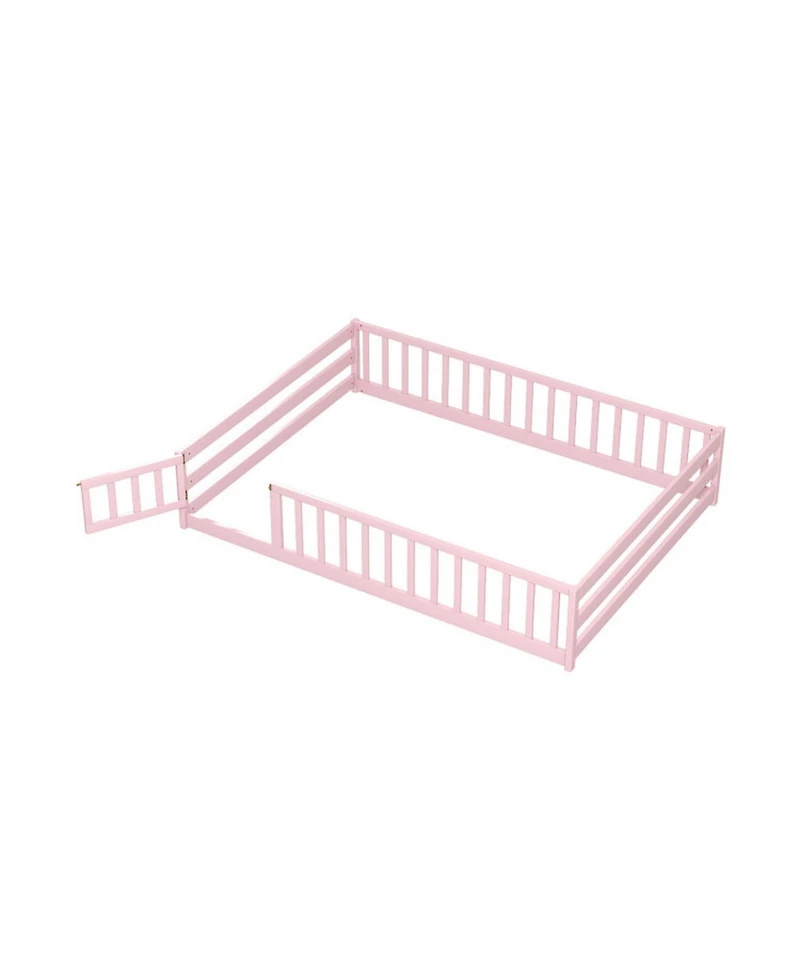 Enhance your sleeping arrangement with this full montessori floor bed, crafted from Pine Wood, Plywood, measuring 77""L x 57""W x 16""H, accommodating a mattress of <=8"", equipped with safety guardrails for secure sleeping The no-box-spring-needed design simplifies setup and saves on additional costs Assembly is straightforward with labeled parts and clear step-by-step instructions.