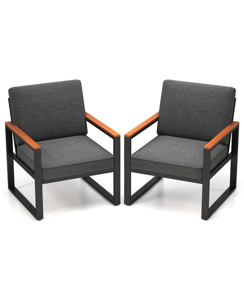 Gouun Modern Aluminum Patio Armchairs Set of 2 with Olefin Cushions
