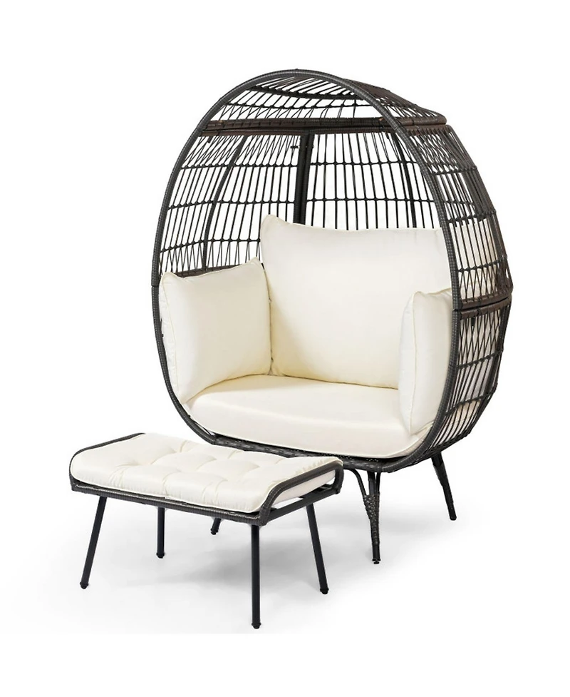 Gouun Oversized Rattan Egg Lounge Chair with Ottoman and Cushions