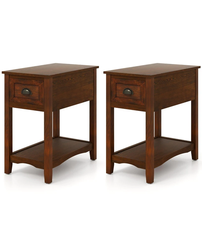 Gouun Set of 2 Retro Narrow End Tables with Drawer and Open Shelf