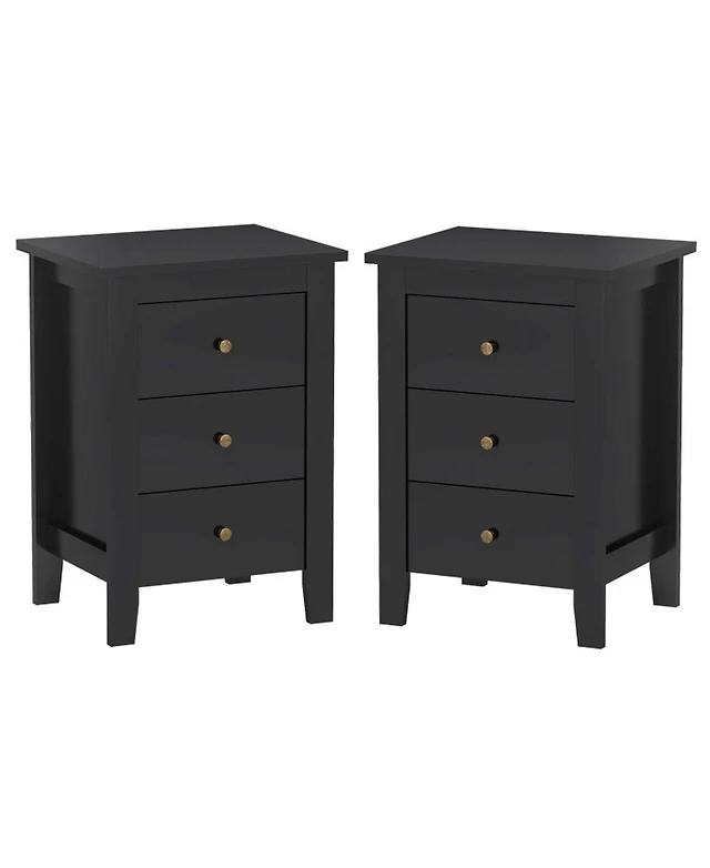 Gouun Set of 2 Three-Drawer Nightstands with Open Platform Top