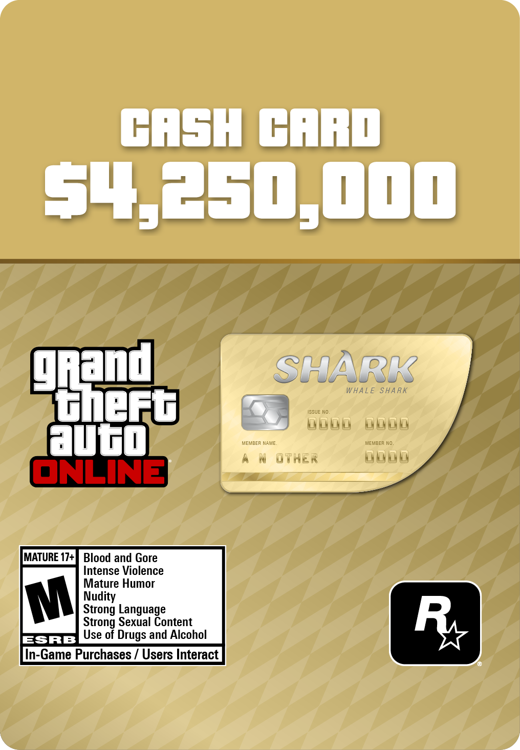 Purchase the Whale Shark Cash Card (Xbox Series X|S) to gain GTA$4,250,000 to spend in the Xbox Series X|S version of GTA Online. Cash is king in this town. Solve your money problems and help get what you want across Los Santos and Blaine County with the purchase of cash packs for Grand Theft Auto Online. All purchased cash is automatically deposited into your character’s bank account. Spend wisely, cash therapy is fleeting.