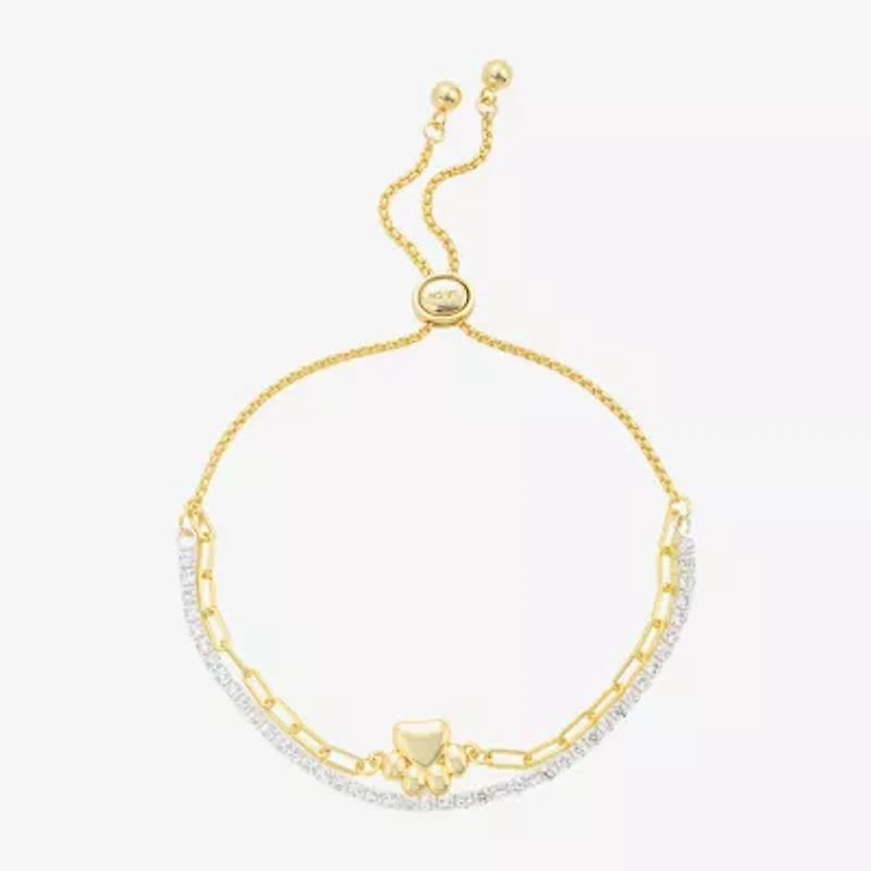 Gratitude & Grace Paw Print Womens Cubic Zirconia Bolo Bracelet