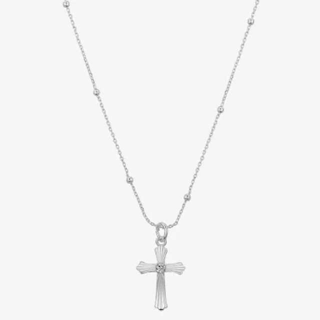 Gratitude & Grace Womens Cubic Zirconia Pure Silver Over Brass Cross 16 Inch Pendant Necklace