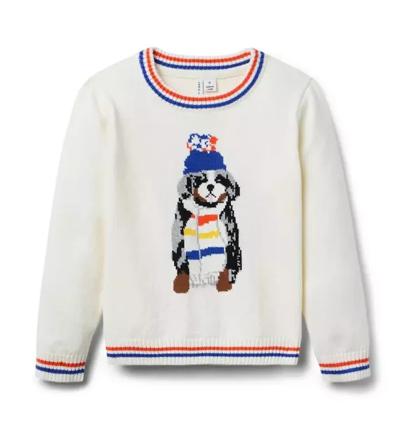 Sweater weather is snow much fun in our limited edition sweater. Oh-so-soft and cozy with an intarsia-knit dog friend and ribbed striped details, it's ready for every adventure. 55% Combed Cotton/25% Rayon/20% Nylon Long Sleeve Machine Wash, Inside Out, Gentle Cycle; Imported