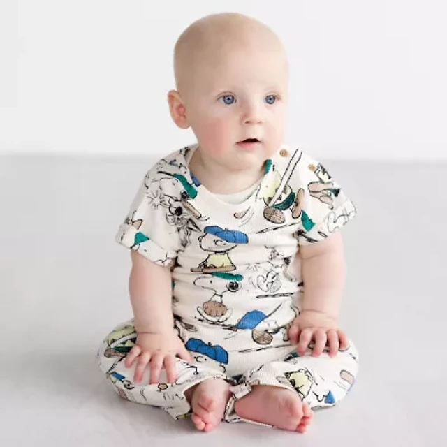 Grayson Little Baby Boys Peanuts Crew Neck Short Sleeve Rib Jumpsuit