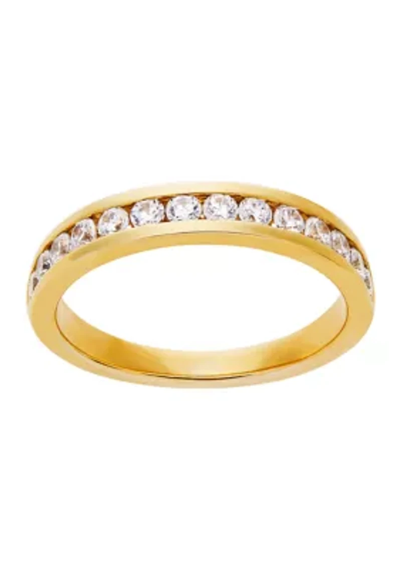Lined with 1/2 ct. t.w. lab-grown diamonds, this simple ring from Belk & Co. is featured in polished 14K yellow gold. 14 Lab grown diamonds Color rating: I Clarity rating: SI Slip-on Prong setting Polished finish Imported Belk Exclusive Product Specifications 1/2 ct. t.w. Lab grown diamond 21.07 mm H x 3.64 mm W Material & Care 14K Yellow gold Clean with a soft cloth