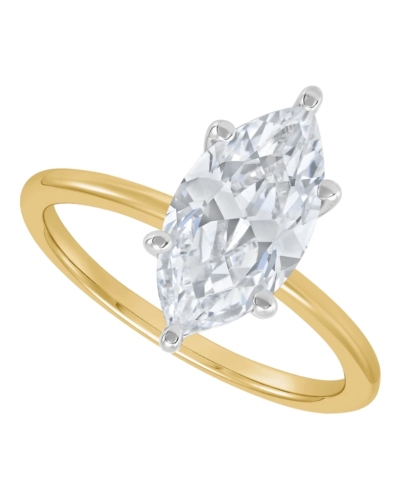 Captivating marquise cut styling makes this Igi certified lab grown diamond solitaire engagement ring an unforgettable symbol of commitment. Tapered points and brilliant facets create a dramatic, eye-catching presence.